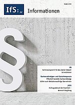 Unsere Zeitschrift informiert 4 Mal im Jahr über sachverständigenrelevante Themen, wertet Rechtsprechung aus, beantwortet Fragen aus der Praxis und gibt hilfreiche Literatur- und Veranstaltungshinweise. Wir veröffnentlichen stes neue Entscheidungen zum JVEG und zur Sachverständigenpraxis. Sie können die IfS-Informationen hier bestellen - oder fordern Sie einfach ein kostenloses Leseexemplar an